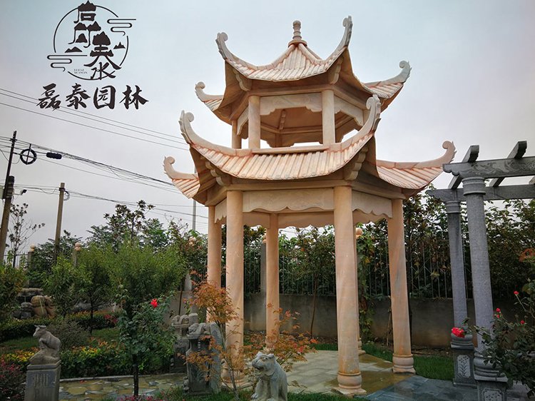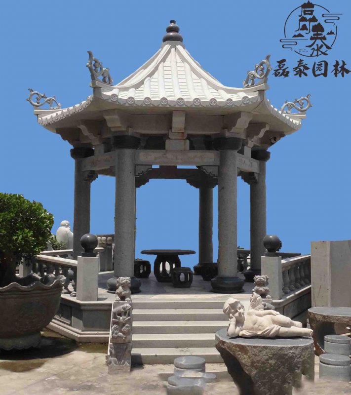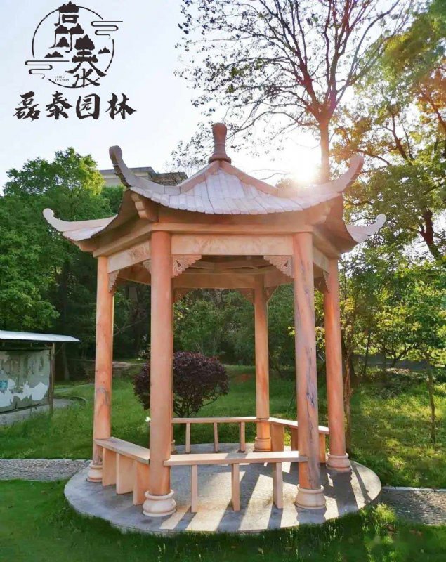 仿古石亭子曲阳磊泰园林石雕凉亭长廊