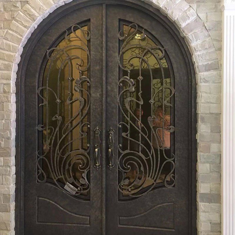 厂家直销铁艺进户门 锻打铁艺玻璃双开进户门