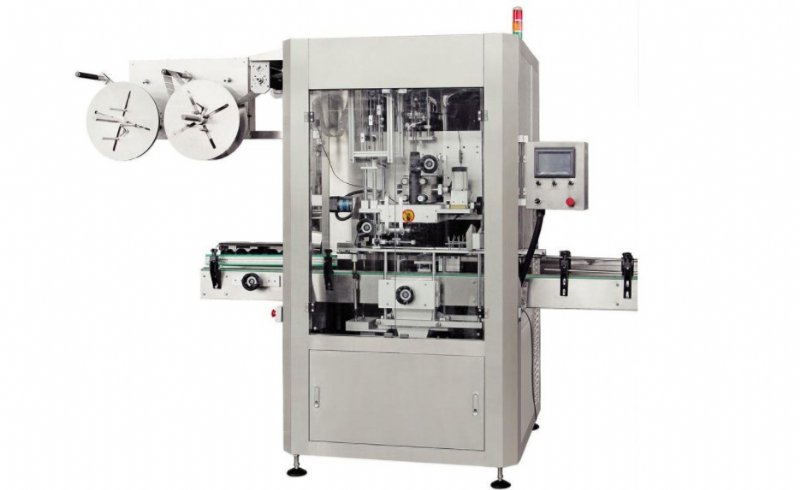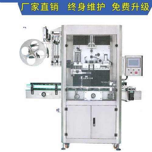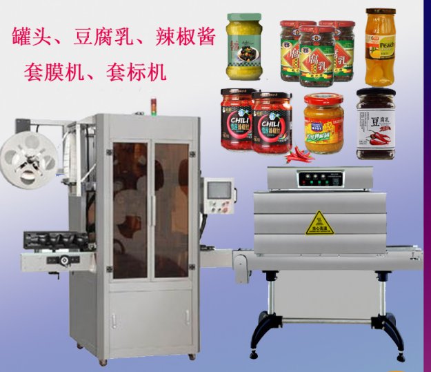 圆瓶自动收缩套标机,山东宏广捷机械,本公司设计制造生产出售:全自动套标机,套膜机,