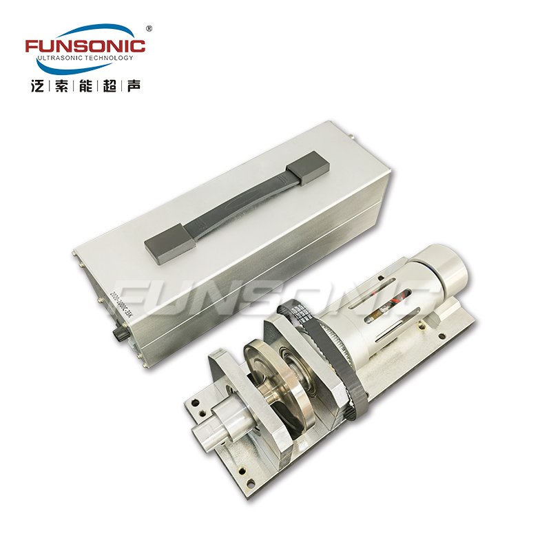 电源组合。超声波数控电源将市电转换成高频高压交流电并供给超声波换能器。超声波换能器将电能转换成机械能(超声波),换能器在纵向做伸缩运动时产生振幅,再通过变幅杆传递给圆盘型焊头。从而使圆盘型焊头进行焊接,配上机架、压轮及辅助的结构和控制部件,就是一台超声波切割缝纫机。