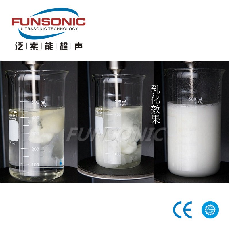 5.成本低,超声波乳化一个重要的特点就是可以不用或少用乳化剂便产生非常稳定的乳液。