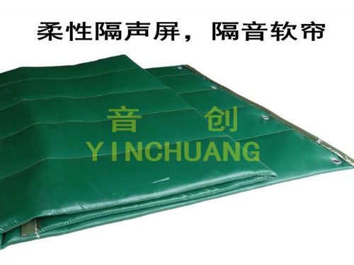 隔音材料加环保吸声材料和表面防护面层缝制而成,具有耐候好、阻燃、隔音效果好、拆卸安装方便、可重复利用等特点。