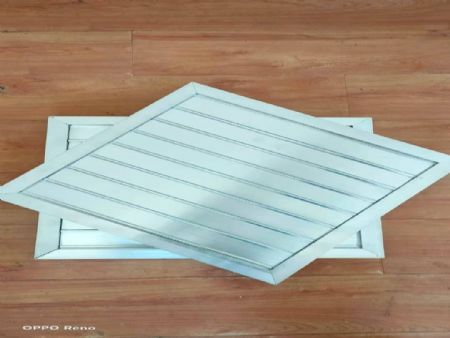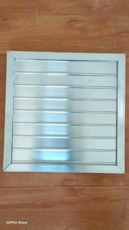烤房* 密集烤房烘烤设备 排湿窗(百叶窗) 全铝合金制作,外形尺寸400mm*400mm,活动叶片8片,此风口用于具有正压的烤房自动排气。通常情况下靠风口的百叶自重而自然下垂,隔绝室内外的空气交换,当室内气压大于室外气压时,气压将百叶吹开而向外排气,反之室内气压小于室外气压时,气流不能反向流入室内,该风口有单向止回作用。烤房* 密集烤房烘烤设备 排湿窗(百叶窗) 铝合金材质 规格400mm*400mm,活动叶片8片