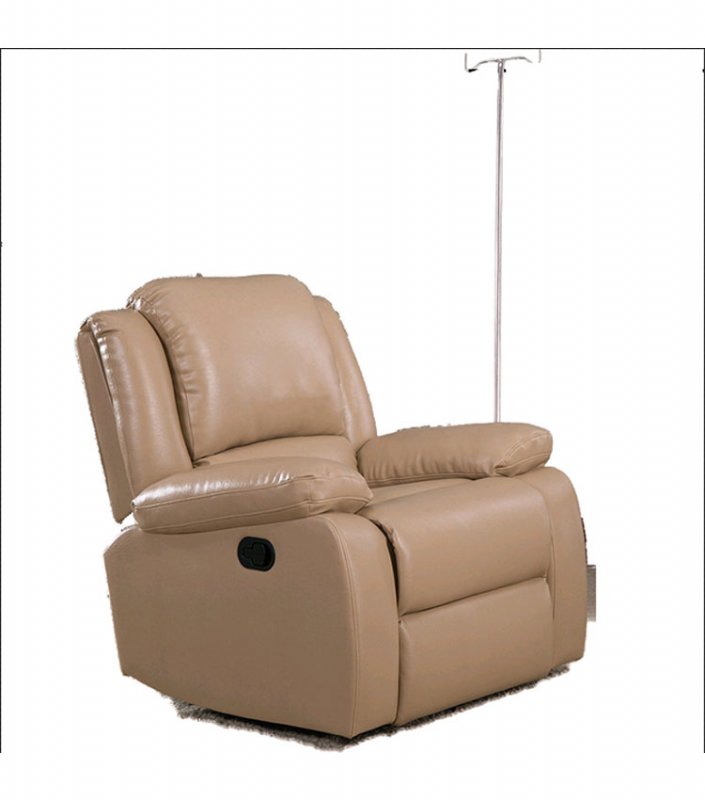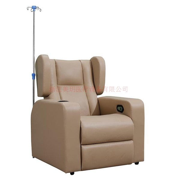 不锈钢和PP注塑件链接,高度任意可调,靠背和坐垫整体联动,可伸缩倾斜27度;输液杆高度1700~1900mm。五金架:是链接靠背,坐垫,扶手,脚踏的主要部件,可伸缩,采用优质