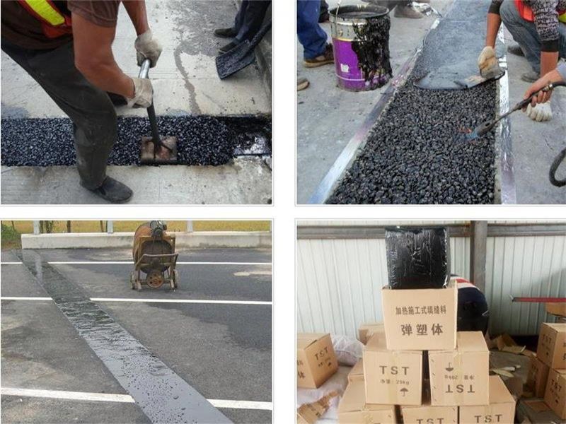 1)TST是一种特制的高粘弹塑性材料,常温下呈弹塑态,高温熔溶后可热灌人碎石中,成型后如同沥青砼状,能承受车辆荷载,又有弹性,可代替小伸缩缝的功能。