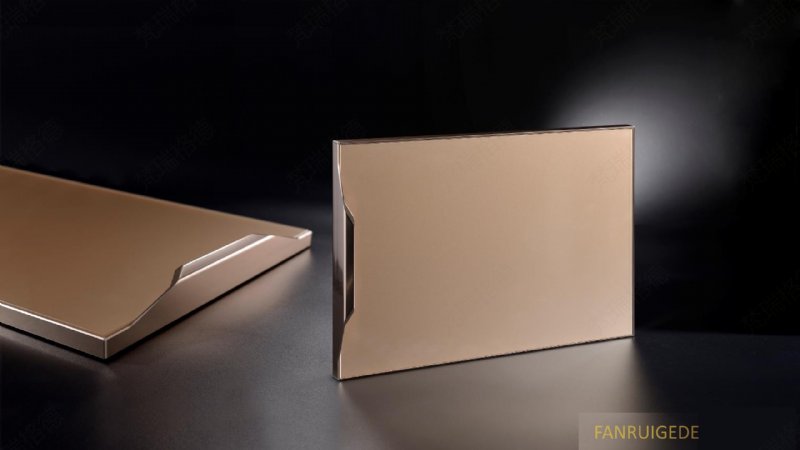 梵瑞格德独创的特殊工艺。采 用R6的圆角可以避免圆角过大导致门缝缺角。 并且采用铝合金一 体成型,无拼接,无转角。浑然天成!