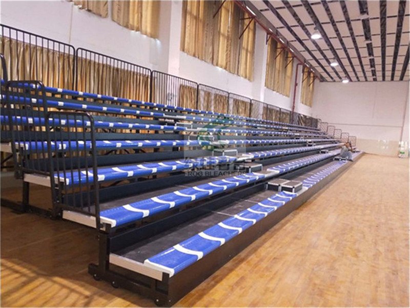 伸缩看台又分为座椅前置式安装和座椅后置式安装。前置式伸缩看台主要是指座椅直接固定在活动看台床架上,以低靠背、平靠背、靠背可翻转
