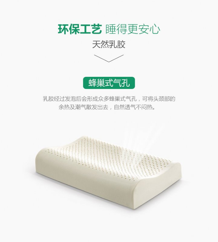 2)乳胶枕有窝蜂网状排气小孔,透气性强,这些小孔可以排出睡眠时颈部的余热,有助于睡眠。