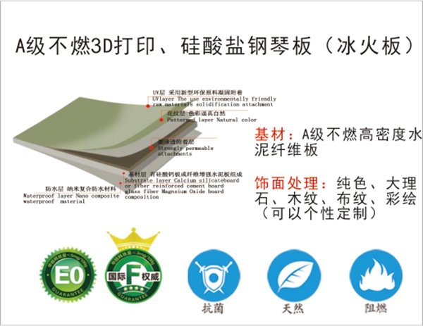 广州瑞欣A级不燃3D打印、硅酸盐钢琴板(冰火板)产品无石棉纤维,主要以水泥、