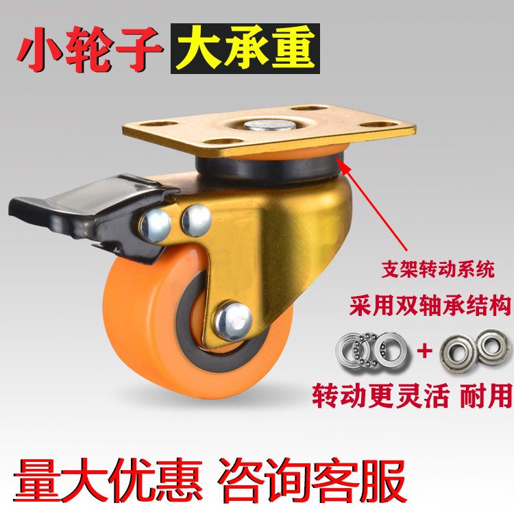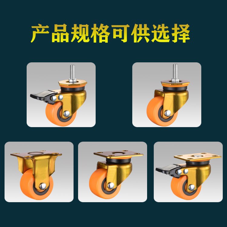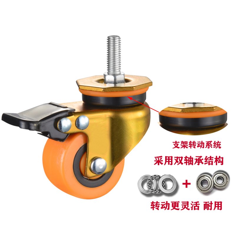 万向轮聚氨酯pu静音脚轮2寸1.5寸黄锌家具丝杆带刹车万向脚轮