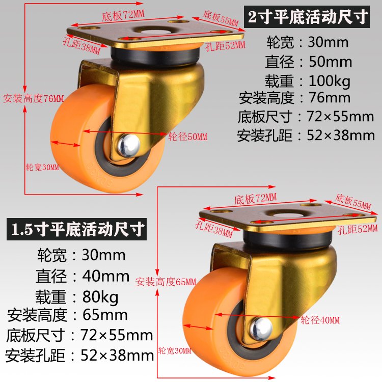 2寸PU轮3寸PU轮 脚轮万向轮轱辘