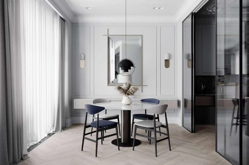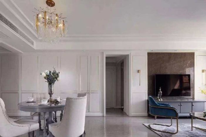 腰线收边,空白处以其他装饰材料完成装饰的,我们称之为墙裙。墙裙一词形象的体现了半高墙板的特点--就好像给墙体穿上了裙子一样。墙裙一般用在公共区域,比如走廊、楼梯等部位。墙裙造型没有整墙板造型那样灵活,多以造型均分为主。若分块大小不均,会显得整体感觉错乱。