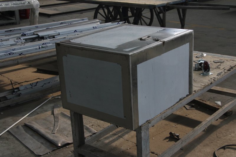 不锈钢,内部是浇注或铅板无缝焊接。箱体底部装有4个
