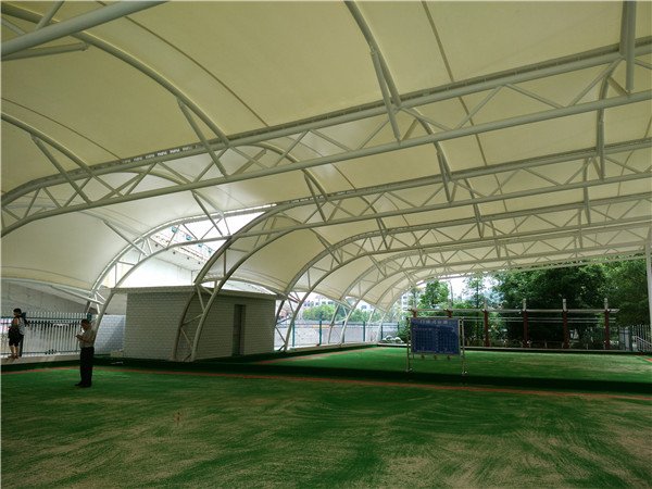 ⒉安全性:按照现有的各国规范和指南设计的的轻型张拉膜结构具有足够的安全性。轻型结构在自然灾害等水平荷载作用下能保持很好的稳定性。由于轻型结构自重较轻,即使发生意外坍塌,其危险性也较传统建筑结构小。膜结构发生撕裂时,若结构布置能保证桅杆、梁等刚性支承构件不发生坍塌,其危险性会更小。膜结构的柔性使其在任一荷载作用下均以有利的形态承载。当然,结构的布置和形状要根据荷载情况来进行设计和调整。设计要确何膜面与其辅助结构协调工作,以避免力在膜面或辅助结构上集中而达结构破坏的临界值。