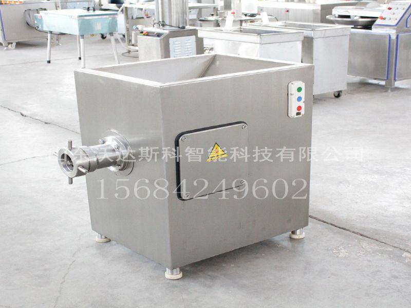 绞肉机是一种在生产过程中根据不同的工艺要求使用生肉的肉类加工企业,加工不同规格的颗粒肉馅,使其与其他辅料充分混合,以满足要求。对不同产品的需求。绞肉机是一系列产品。工作时,利用旋转切削刃和孔板上的孔刃形成的切削作用来切割原料肉,原料在螺杆挤压力的作用下不断排出机器。根据不同的材料性能和加工要求,可以配置相应的刀具和孔板来加工不同尺寸的颗粒,以满足下一工序的工艺要求。