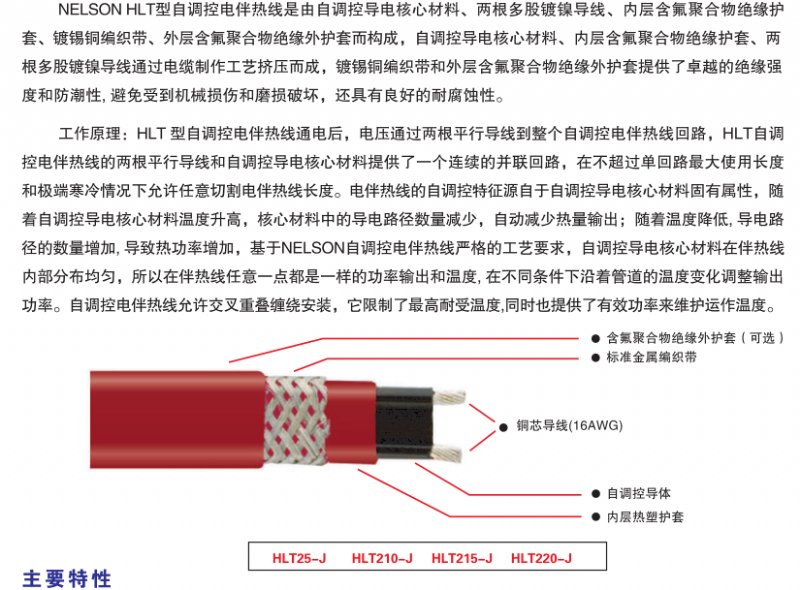 4.艾默生-尼尔森Nelson自调控电伴的高性能护套材料是有高效的防腐蚀和防潮湿功能。