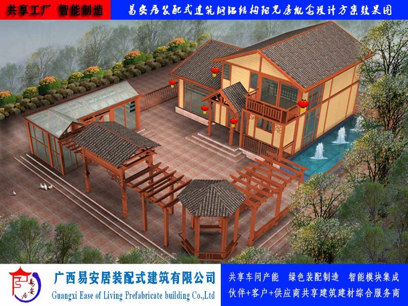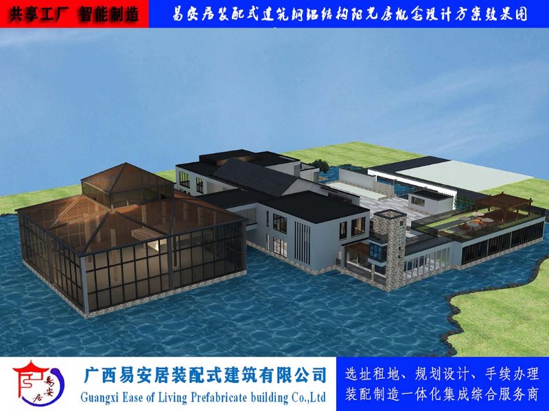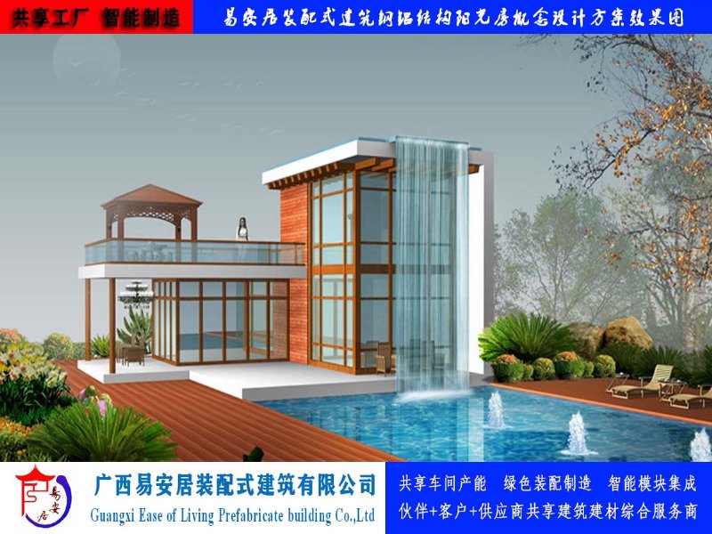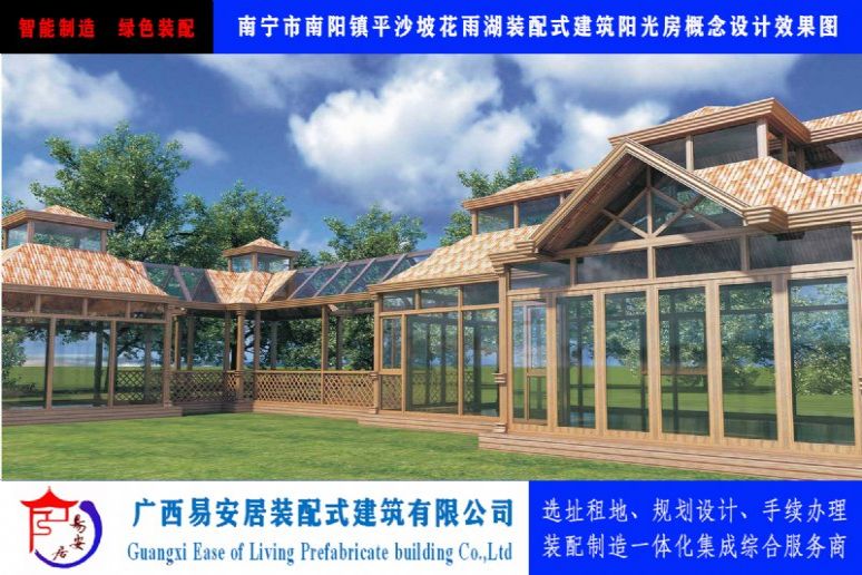 广西易安居装配式建筑设计制造的装配式建筑阳光房系列产品设计新颖、简明美观,建设快,易维护,可循环使用,可量身定制,功能适用,拆装自由,运输方便,可随意变更地点,且模块单元自由组合,坚固耐用,密封性能好,有很强抗震、抗变形特性。公司响应时代的大决策,掀起装配建筑革命新浪潮!研发和设计的装配式建筑不仅仅是房子,她更应该且必须是人与自然的载体、生命的栖地、智慧的摇篮、艺术的园地、人生的港湾、心灵的明窗、生活的景观、幸福的瑶池!