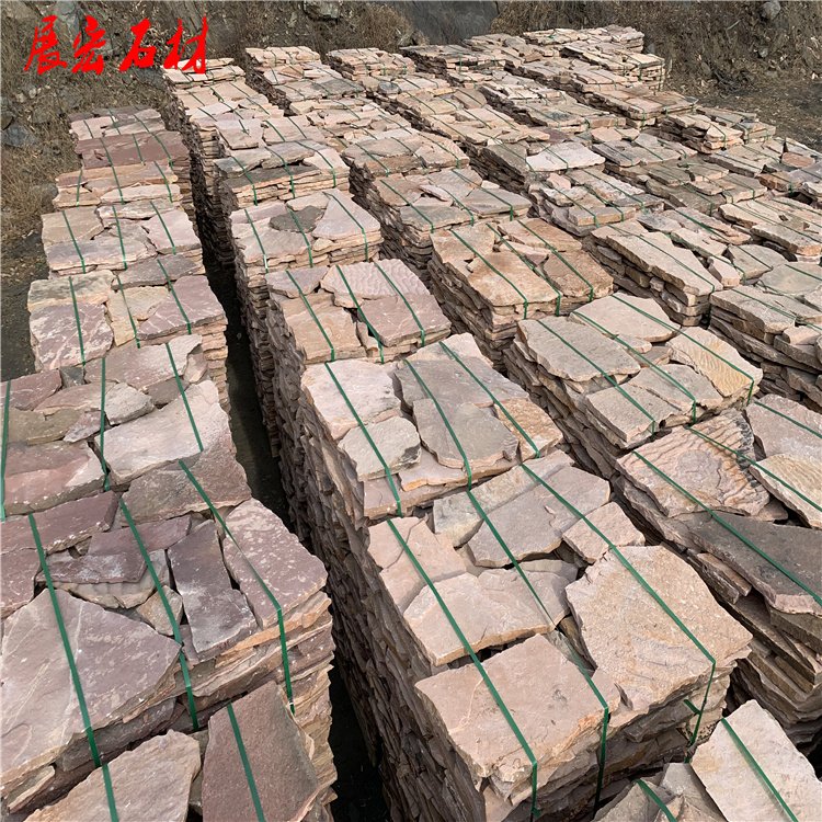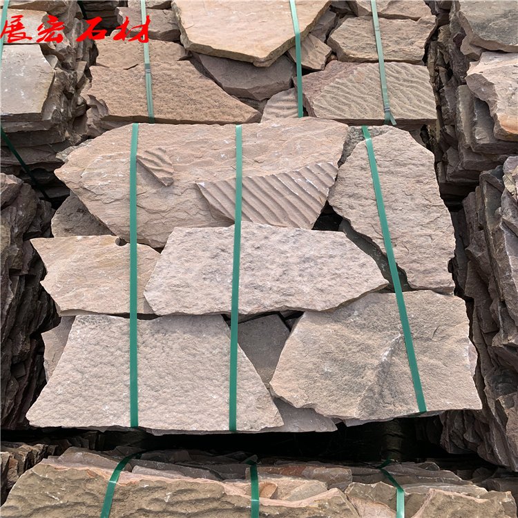 砂岩碎拼石是一种不规则乱形石材原料开采于太行山自然界的石材矿订,时将手工分劈 打凿,经过加工,成为一种装饰碎拼