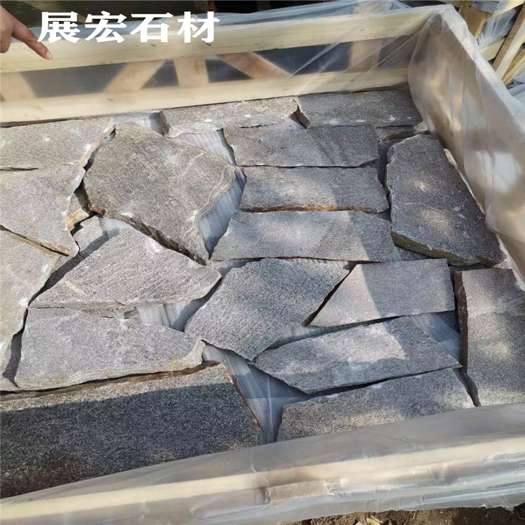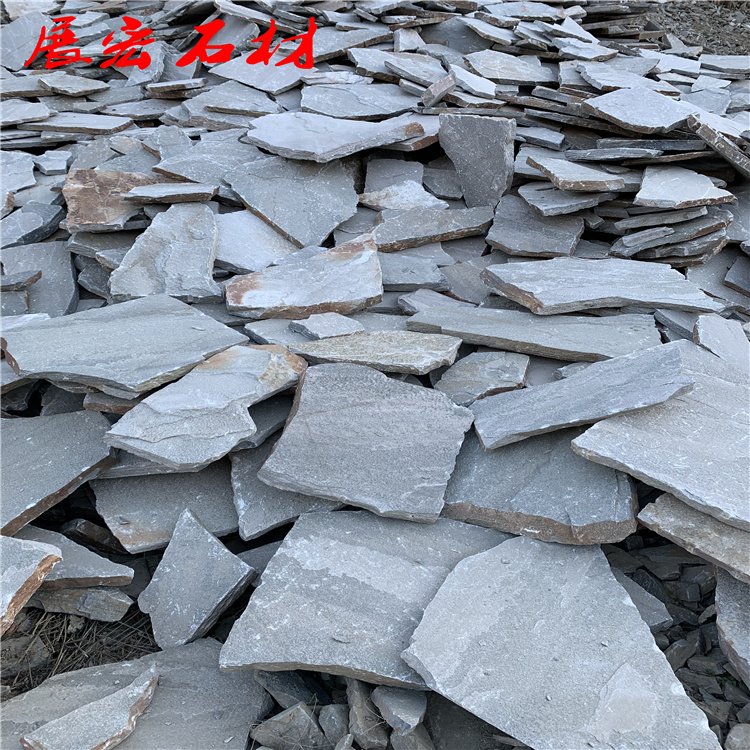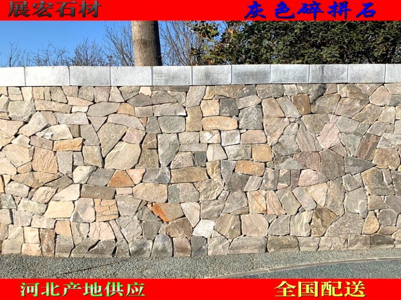 灰色碎拼石 灰石英铺地片石乱形石景观垒墙石