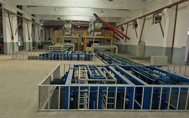 脱模剂、自动配料、自动上浆、自动铺布、自动摊平、自动分切、自动复压、自动接板等自动化功能。