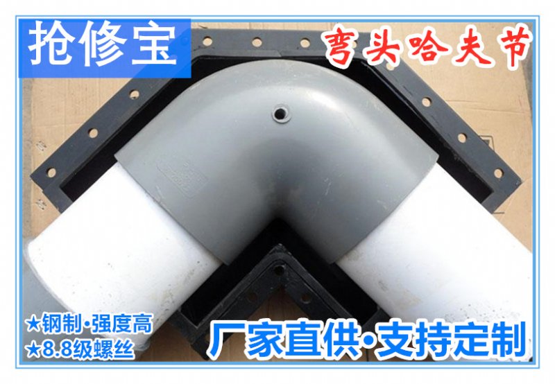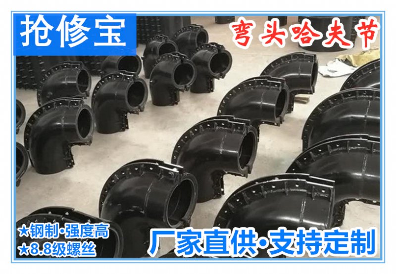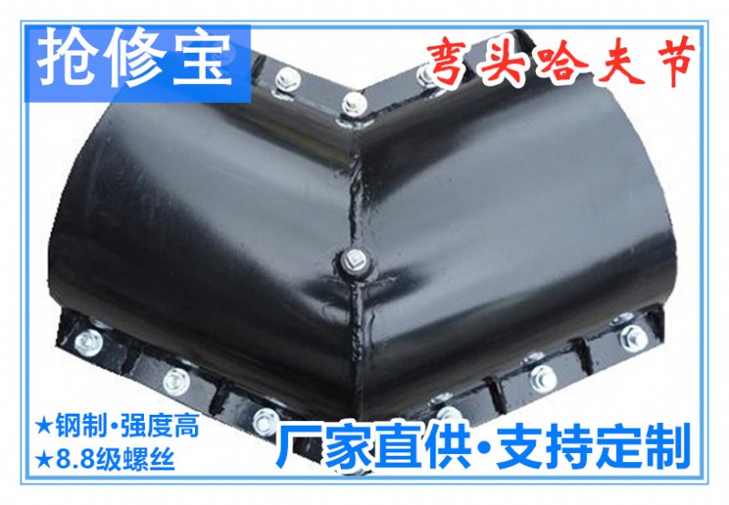 产品简介:主要用于弯头连接处漏水抢修。无需更换弯头,直接把弯头包起来,可实现不停水带压操作