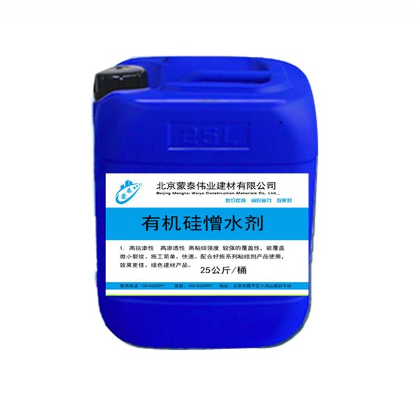 防水剂是以甲基硅醇钠为基材。它是一种小分子水溶性混合物,易被弱酸分解,在空气中二氧化碳和水的作用下,能生成甲基硅氧脘,形成不溶于水的有良好防水性能的甲基硅醚(即防水膜),是一种憎水性物质。将其掺入水泥