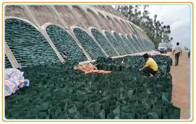 3、 抗紫外线。复合聚丙烯纤维添加了抗紫外线成分,可以在一段时间内抵抗紫外线对材料的破坏。特别要说明的是,抗紫外线剂的作用并不能长久保持,所以护坡施工完成后,对坡面的绿化工作应尽快展开,以免袋子因长时间曝晒而受损。