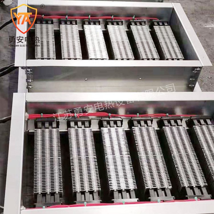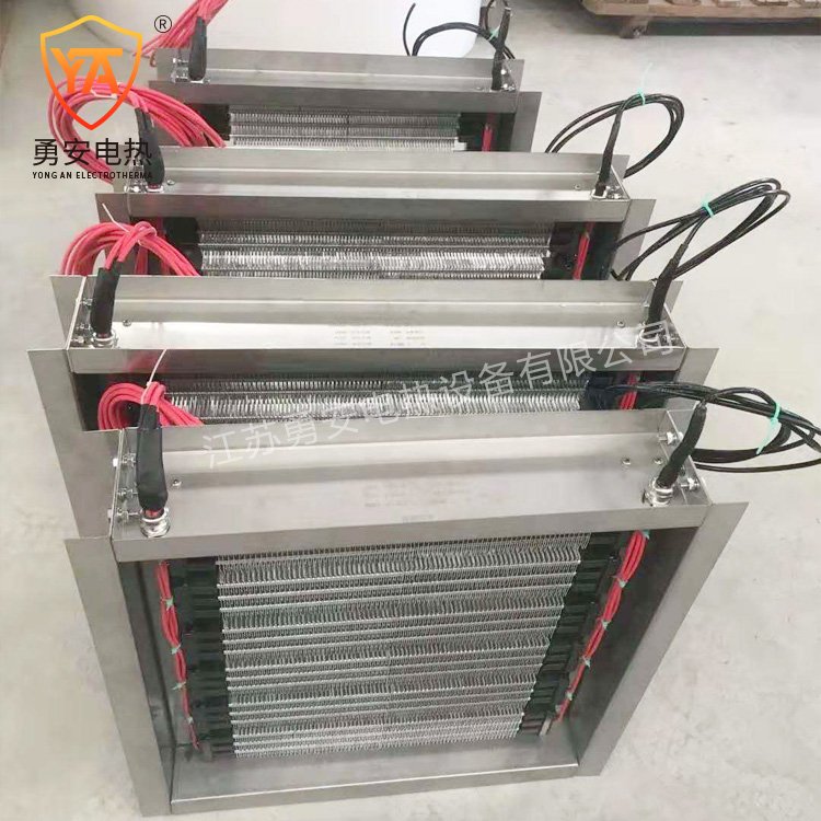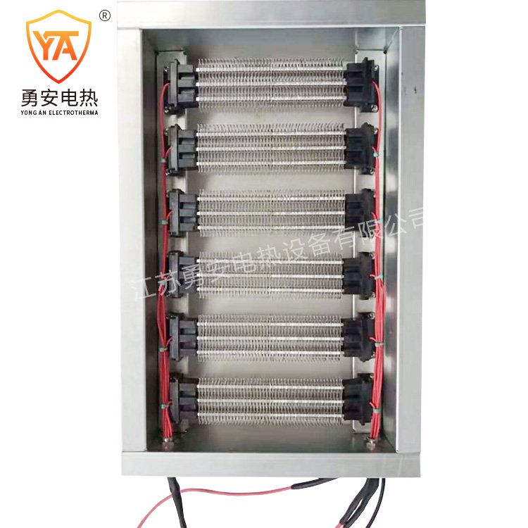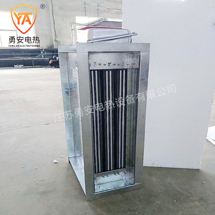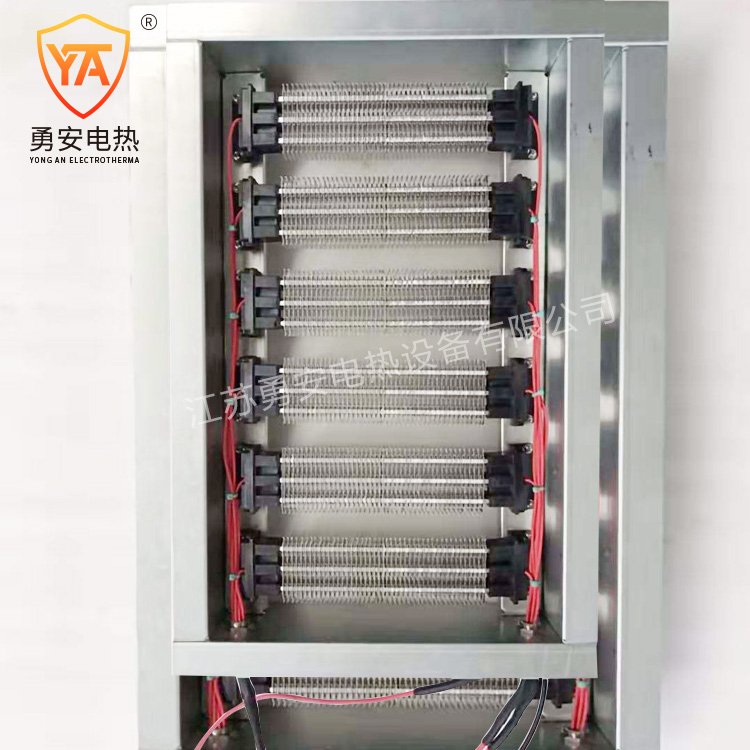 元件表面应设翅片散热结构,低、中温风道电加热器无须设置隔热区或散热器区且电加热器元件表面自然散热,电气控制与