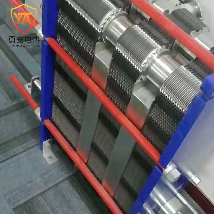 换热器是用薄金属板压制成具有一定波纹形状的换热板片,然后叠装,用夹板、