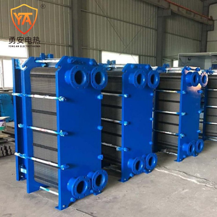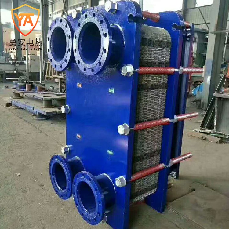 板式换热器是由一系列具有一定波纹形状的金属片叠装而成的一种新型高效换热器。各种板片之间形成薄矩形通道,通过板片进行热量交换。板式换热器是液—液、液—汽进行热交换的理想设备。它具有换热效率高、热损失小、结构紧凑轻巧、占地面积小、安装清洗方便、应用广泛、使用寿命长等特点。在相同压力损失情况下,其传热系数比