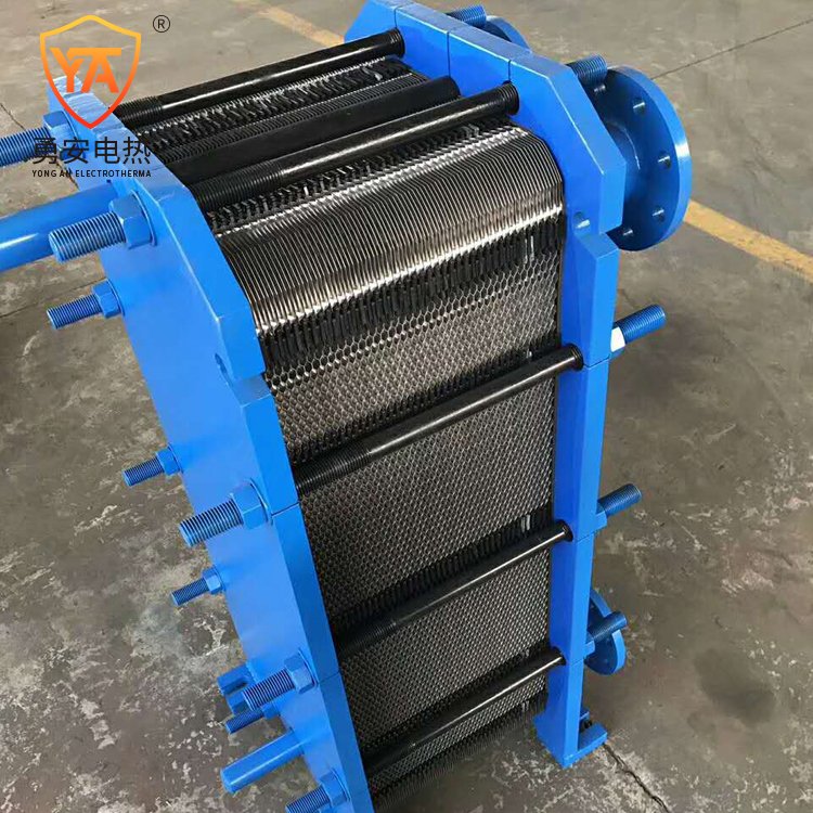 螺栓紧固而成的一种换热器。各种板片之间形成薄矩形通道,通过半片进行热量交换。工作流体在两块板片间形成的窄小而曲折的通道中流过。冷热流体依次通过流道,中间有一隔层板片将流体分开,并通过此板片进行换热。