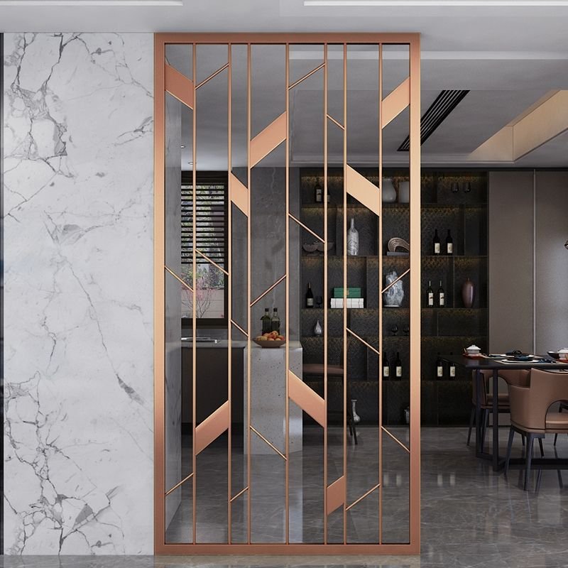 不锈钢屏风隔断采用真空多弧离子镀钛工艺,可对不锈钢表面进行电镀颜色处理,颜色有黄色、玫瑰金、古铜、香槟金、黑钛、深黑色、茶色、天蓝、紫红、咖啡金、黑钛、玫瑰红、钛金等,具有典雅、现代、绚丽、朴素等多种风格。