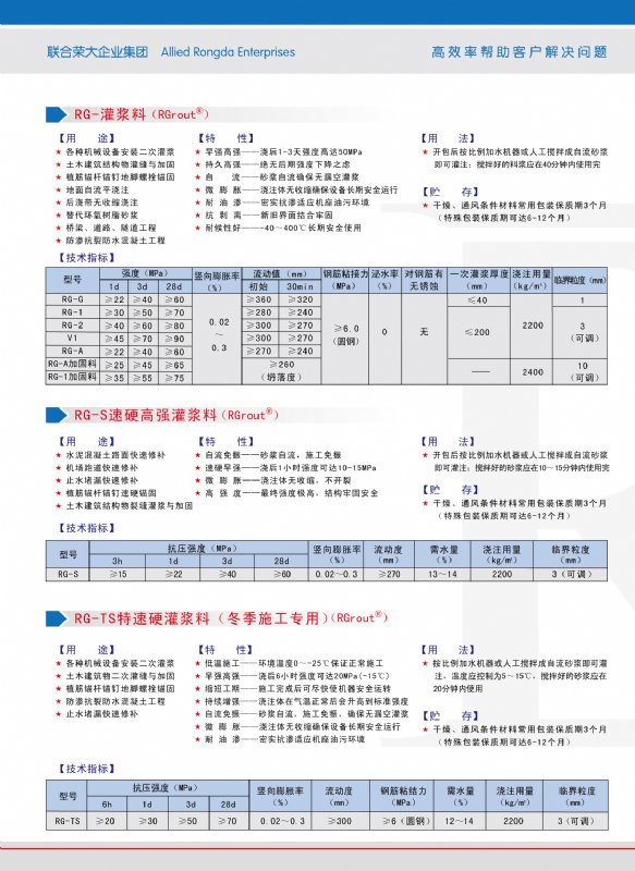 公司产品广泛应用于石化医药,电力、造纸,水泥,港口交通,客运专线等领域,承担过奥林匹克国家会议中心,国家博物馆等地坪分包工程,本公司生产的灌浆料曾应用于华锦集团十一五工程,西气东输、京沪高铁等国家重大项目。