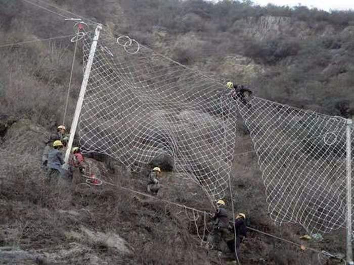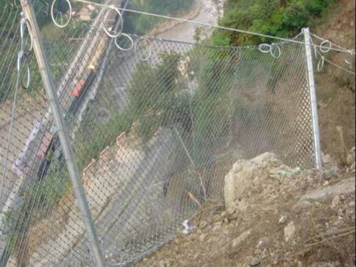 钢丝绳网被动防护系统的特点在于:系统的柔性和拦截强度足以吸收和分散传递预计的落石冲击动能,消能环的设计和采用使系统的抗冲击能力得到进一步提高。与刚性拦截和砌浆挡墙相比:改变了原有施工工艺。使工期和资金得到减少。本系统以崩塌落石的冲击动能作为工程施工的设计选型依据,避免了刚性坡面防护设计中,参数与防护等级不相称或相差较大等缺点,针对不同的防护等级。公司开发设计出不同能量等级的产品与之相配套。防护能量从250-3000kj,并已能对高达5000kj的更高能级进行特殊防护