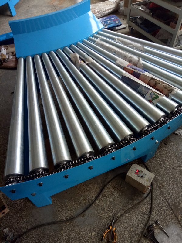输送机内宽度由客户*,可按客户需求制作,转弯滚线标准转弯内半径为300、600、900、1200mm等,也可按客户需求采用其它特殊规格。直段滚筒所用的滚筒直径有38、50、60、76、89mm等。转弯滚筒的锥度我们会根据输送物体的重量、外形尺寸、线速度等来设计。 机架材质:碳钢喷塑,
