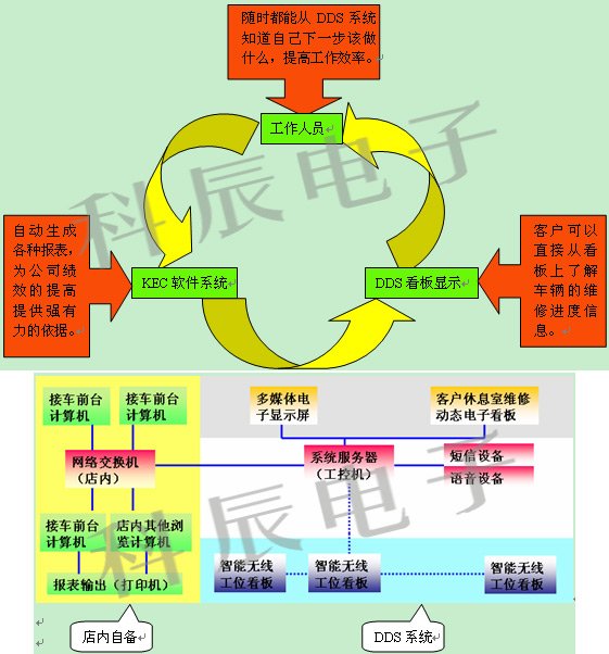 DDS系统是采用国际上*先进的全自动电子看板管理技术,用现代科技设计的一套集无线移动技术、电脑软件、互联网络、语音短信系统、看板大屏幕终端显示设备等技术的综合管理系统。可以自动监管从接车修理到出厂过程的所有数据,并将这些大量的枯燥的数据以各种角度提炼出来,以“抬头就能看见”的方式显示在大屏幕上(动态维修看板多媒体显示屏),管理变得简单、快速、精细,服务变得透明、公开、省时。