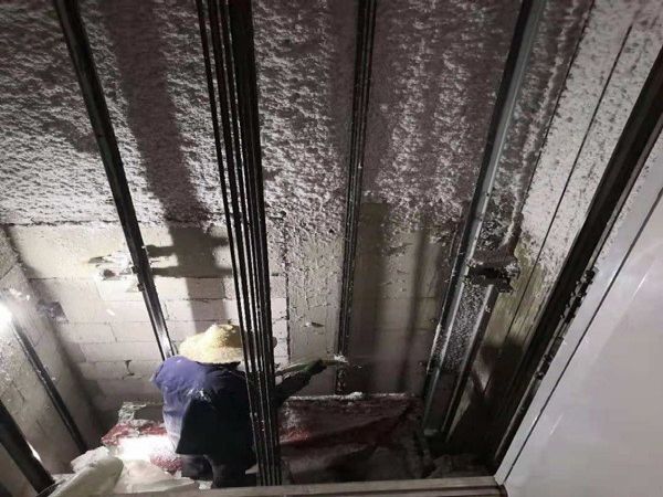 无机纤维喷涂,提高了井道墙壁的隔音减震效果。