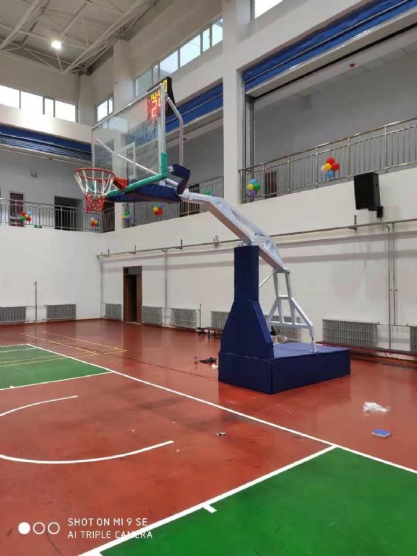 篮球架、手动液压篮球架,篮球架伸臂2.25m,蓝圈上沿离地面3.05m。