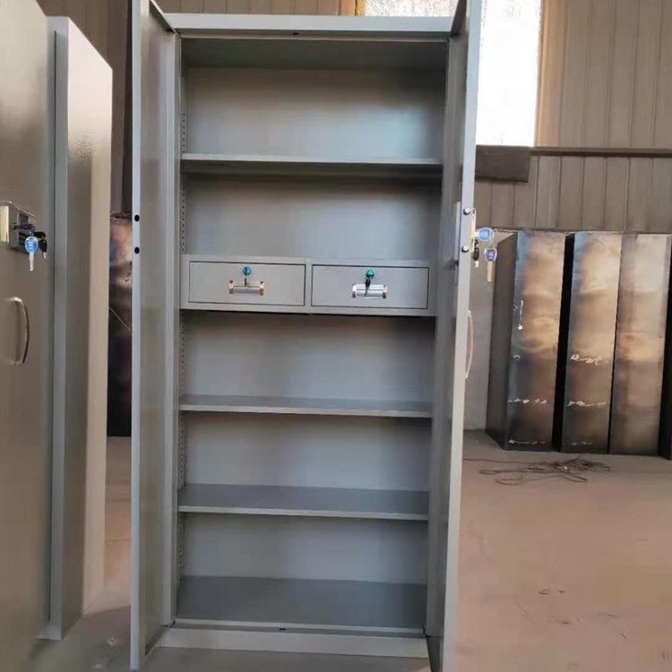 钢板厚度,尤其是门板的厚度上区分,质量较好的保密柜产品,其门板的钢板厚度是不低于0.9mm,并且是由一整块钢板构成的,而想比之下,质量较差的产品,其钢板厚度很薄,保密柜多少钱,并且有可能是由两块钢板拼合起来的。轻轻敲击箱体,听听声音,好的保密柜的箱体完全是由全钢板组成的,敲击起来会有很清脆的声音,而有的产品是由内外两块很薄的铁皮组成,