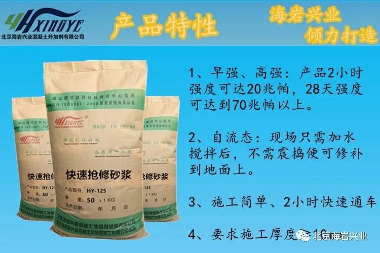 该产品为具有高粘结力、灰色超早强混凝土材料;既有水泥混凝土的强度,又有沥青混凝土的柔性,抗冲击和抗剪切。