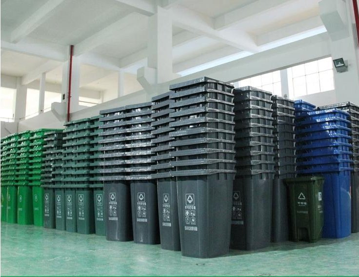塑料垃圾桶生产方面有专业的生产流程工作线,可以生产240L、120L、60L、30L、等各种型号的塑料垃圾桶 。聚乙烯原料垃圾桶的特点(1)