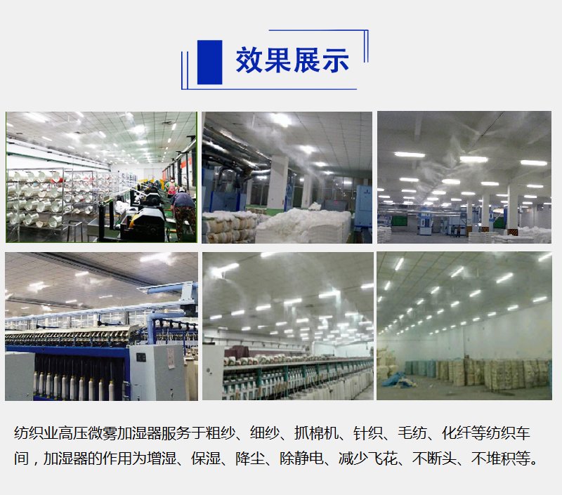 纺织车间使用高压微雾加湿器的作用: