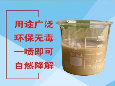 抑尘剂是由新型多功能高分子聚合物组合而成。聚合物分子间的交联度会形成网状结构,同时分子间存在各种离子基团,能与离子之间产生较强的亲合力。它的作用机理是通过捕捉、吸附、团聚粉尘微粒,将其紧锁于网状结构之内,起到湿润、粘接、凝结、吸湿、防尘、防浸蚀和抗冲刷的作用。具有良好的成膜特性,可以有效的固定尘埃并在物料表面形成防护膜。路面在使用了抑尘剂之后,可能会看到不同的效果,这些不同的效果取决于使用量的变化。适中的使用量,会在地表形成一个“三维硬壳”,从而有效地抑尘和防止风蚀。使用之后,表面会形成类似混凝土的效果,这种应用被广泛用于凝聚土壤和简易道路建造(例如简易飞机跑道的建造)。通过调节使用量和使用频率,有效期可达几周到几年不等。但zui重要的是:是真正意义上的可降解产品,对环境安全不会产生任何不良影响,使用方便,安全。