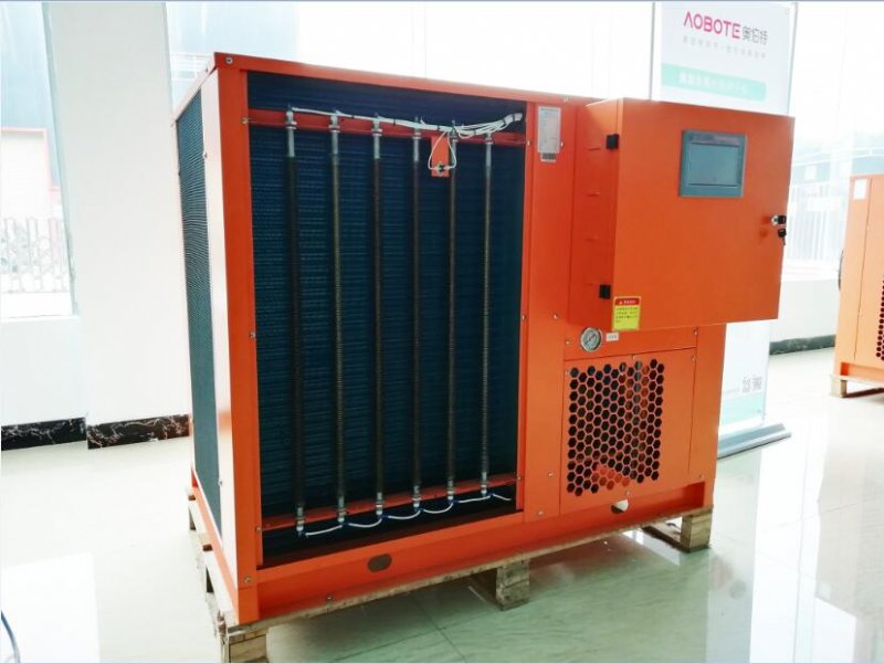 热泵烘干机,一种通过消耗电能驱动压缩机做功,从环境空气中获取300%~500%热能,对烘房物料进行加热,通过新风排湿从而实现物料干燥的设备。开式热泵烘干机升温快,适合环境温度稍高的地区使用,如南方、或者夏天使用*佳。开式侧送风热泵,适合平铺物料烘干。