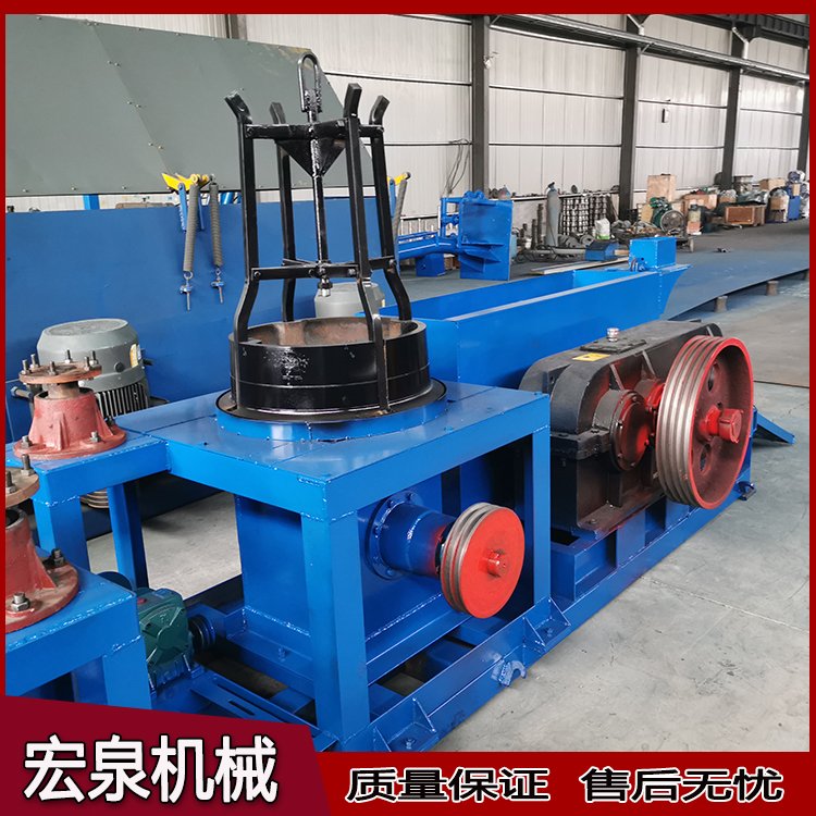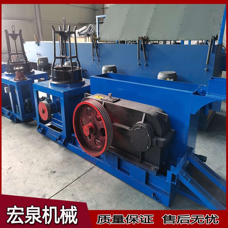 是由多个拉拔头组成的小型连续生产设备,通过逐级拉拔,并将拉拔头置于水箱中,将钢丝拉到所需的规格。就几个主要水箱式拉丝机生产商来看,一般配置了20个左右的拉拔头。通过每一级的拉拔后,钢丝的线径发生了变化,所以每个拉拔头工作线速度也应有变化。在整个拉拔过程中,只需要1台电动机通过机械传动或