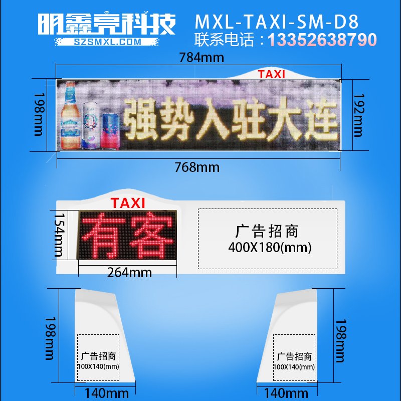 9、顶灯可以对接GPS系统、计价器系统等,具备良好兼容性。