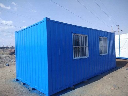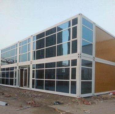 ,采用模块化生产技术,以集装箱为基础材料稍经改造而成为有窗有门的房子。此类集装箱房常见于建筑工地作为临时办公室、宿舍、会议室、