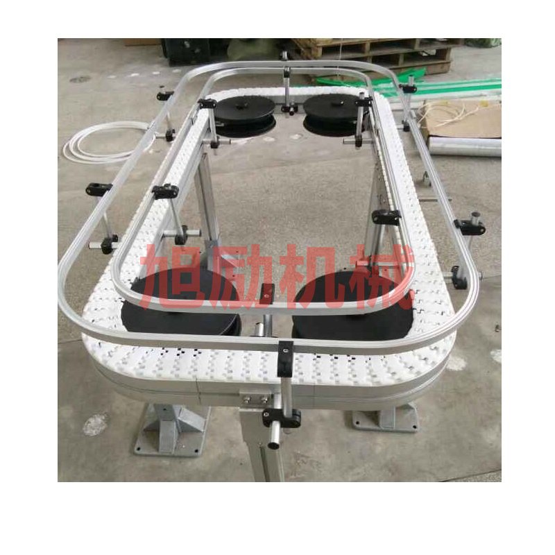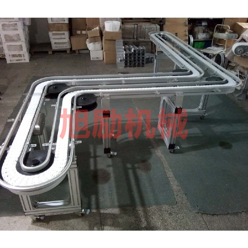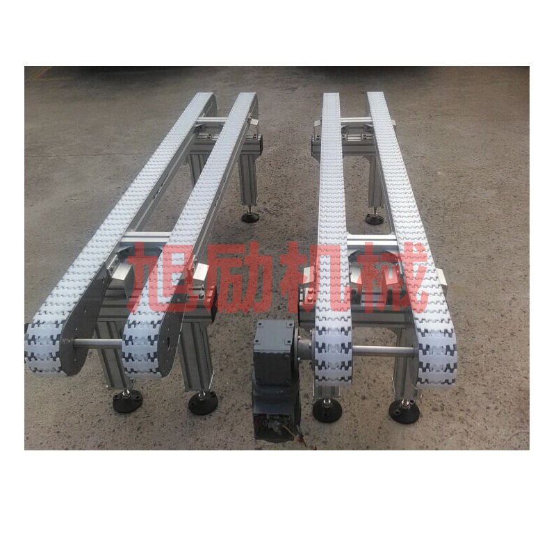 链板输送机采用铝合金框架,塑钢输送链。具有灵巧、轻便、美观,标准化的结构,模块化设计,安装快速,随意、系统稳定、紧凑、安静、*。主要用在高速、重载、低噪音、大中心距的工况下,其传动性能优于齿形带传动、