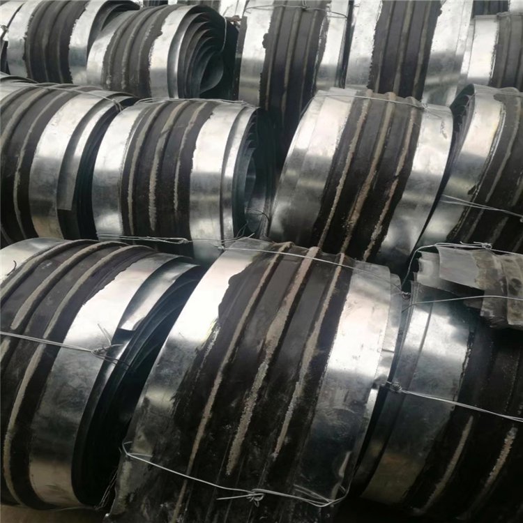 钢边橡胶止水带,钢板增设安装孔与钢筋相连接,固定牢靠不易位移,使各部分受力均匀,合理。伸缩孔久壁为平面,止水带在施工时板模夹制接触面大,不易脱位;钢板增设安装孔与钢筋相连接,固定牢靠不易位移。镀锌钢板与混凝土的良好粘接,钢边橡胶止水带使防水性能更佳。