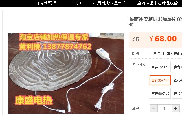 适用于:披萨外卖保温, 圆形区域加热保温,圆形受热面积的加热保温电热升温的都可以用!